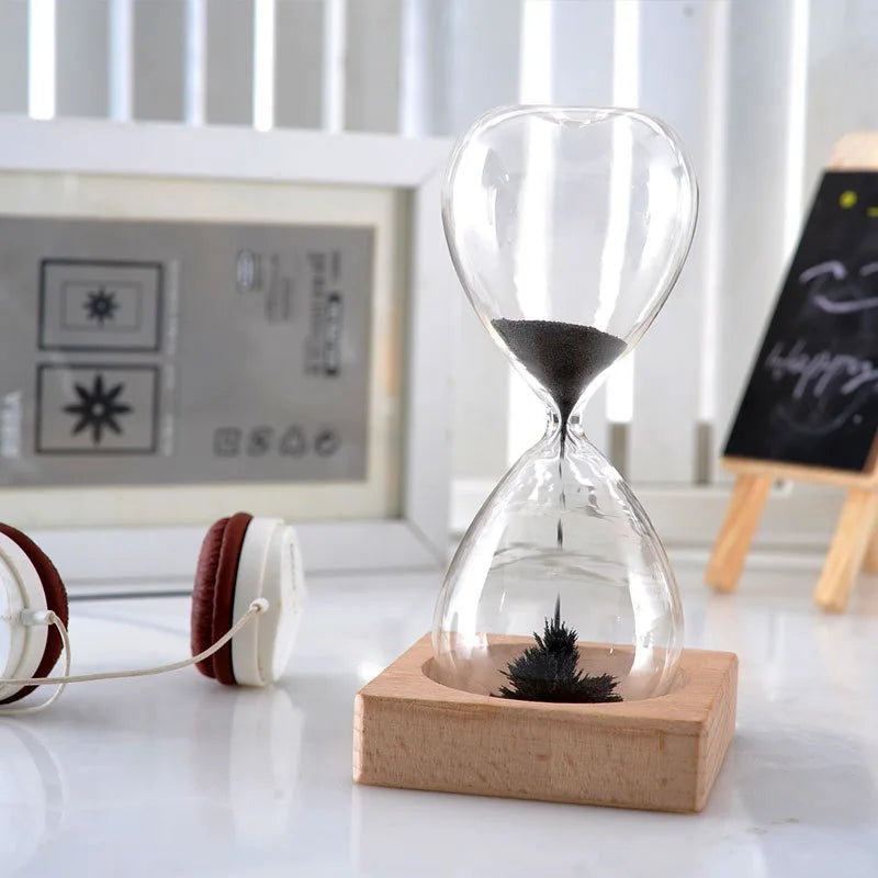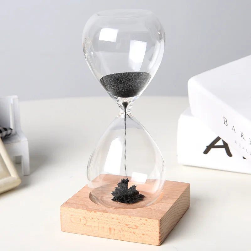 With a sleek and modern design, it creates a mesmerizing display as the iron filaments gracefully flow through the hourglass, providing both visual appeal and practical use.