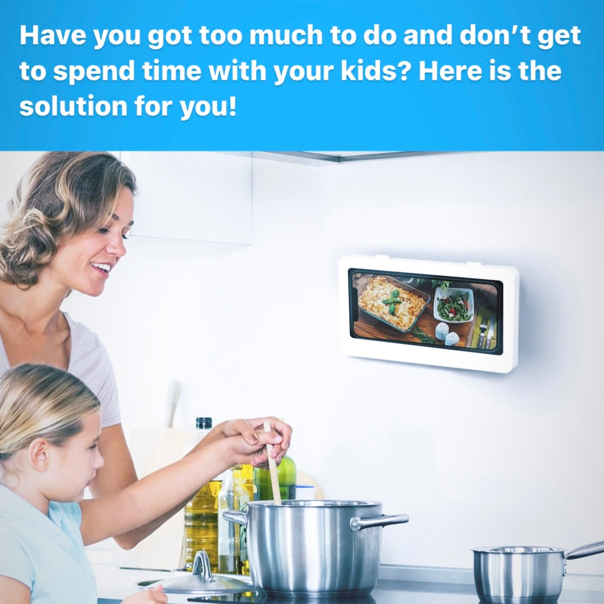 A valuable tool for busy parents who struggle to find time to spend with their kids. Just mount your phone using ShowerSheild at any location like in kitchen or while working out and enjoy. This can help bridge the gap between your busy schedules and quality time with your kids